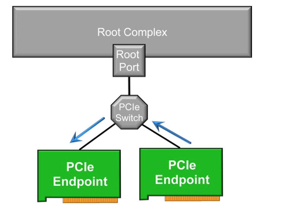 PCIe规范允许 peer-to-peer transactions;意味着某些情况下数据交换可能不经过根复合体(root complex);